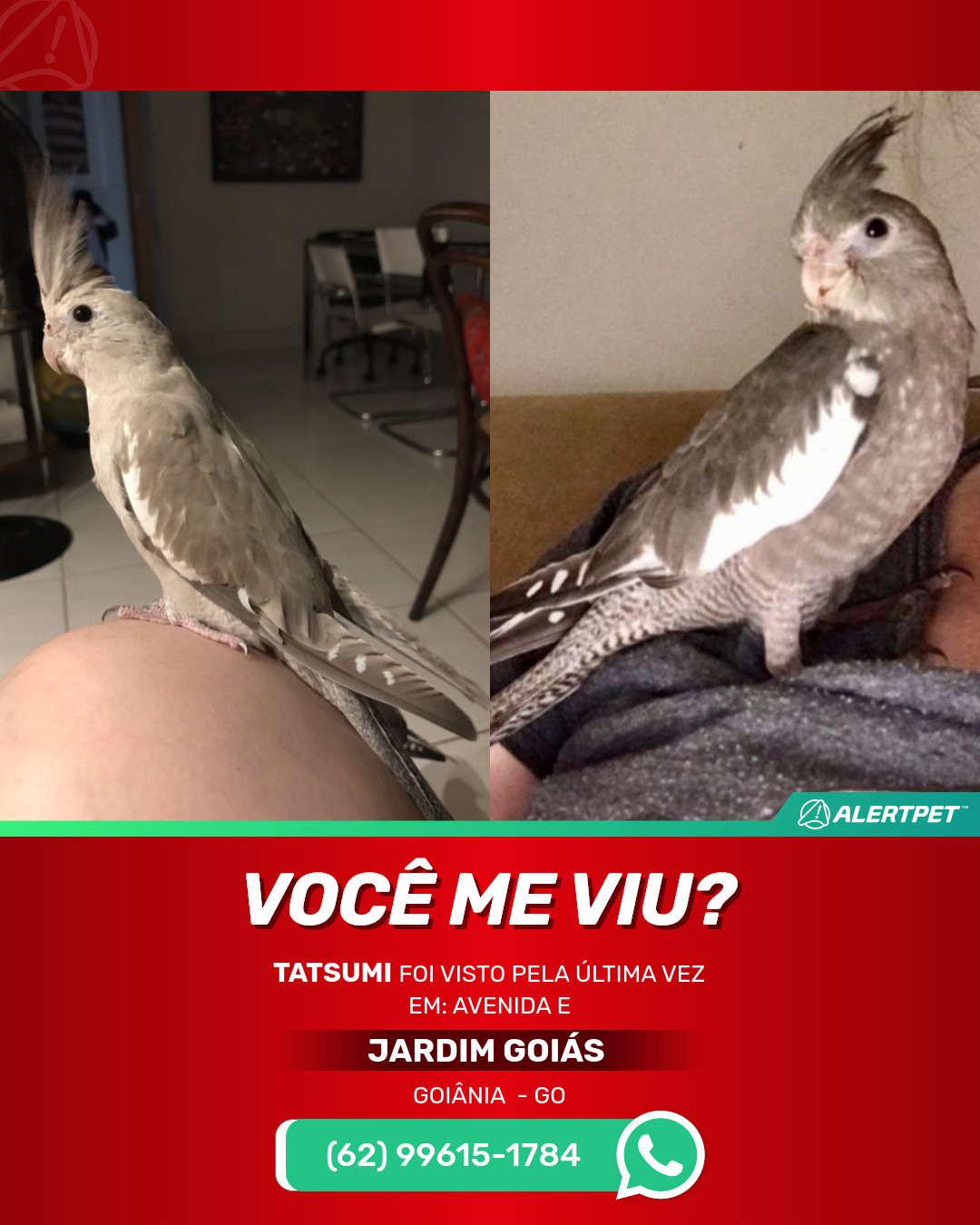 #alertpet #procurase #PássaroDesaparecido #Goiânia #procuramosTatsumi