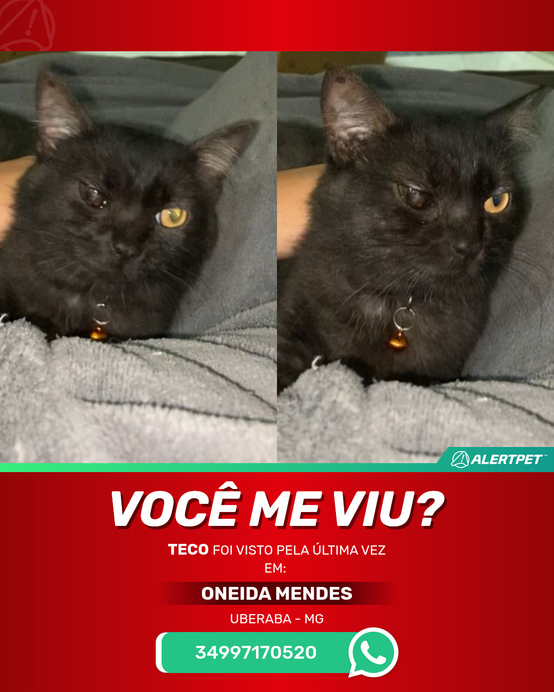 #AlertPet #Procurase #GatoDesaparecido #Uberaba #ProcuramosTeco