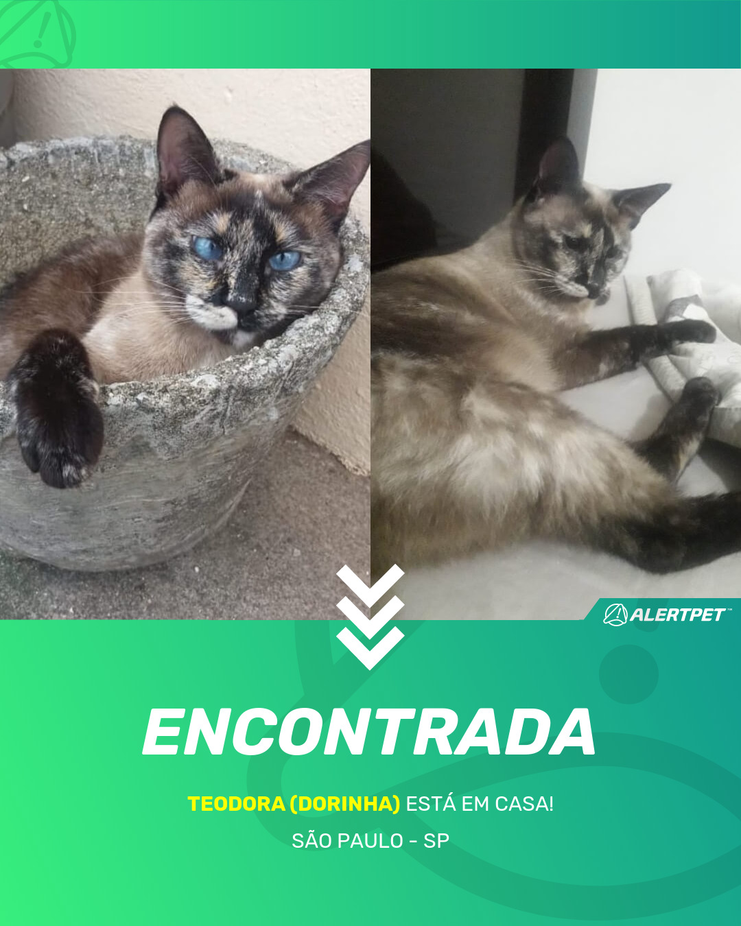 Depois de dois meses a cadelinha foi finalmente localizada graças a um anúncio da AlertPet