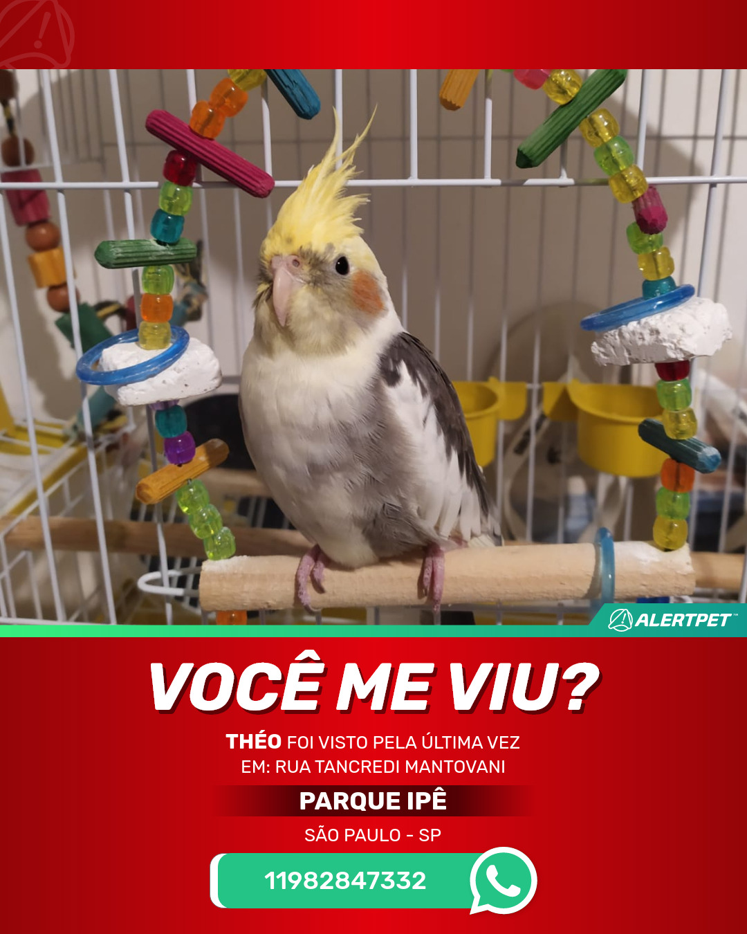 #AlertPet #Procurase #PassaroDesaparecido #SaoPaulo #ProcuramosTheo