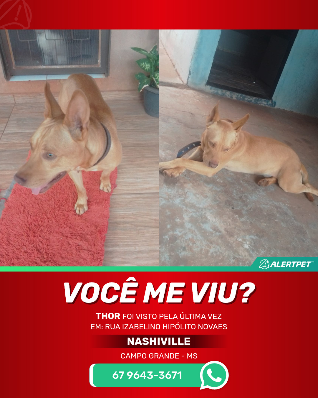 #AlertPet #Procurase #CachorroDesaparecido #CampoGrande #ProcuramosThor