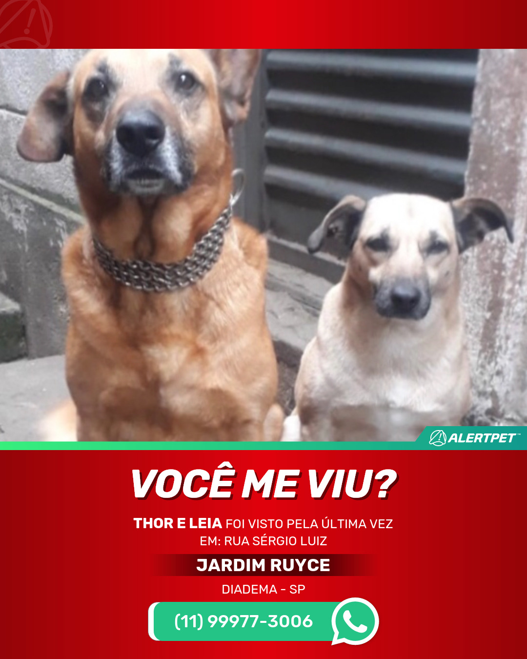 #alertpet #procurase #CachorroDesaparecido #Diadema #procuramosThor e Leia