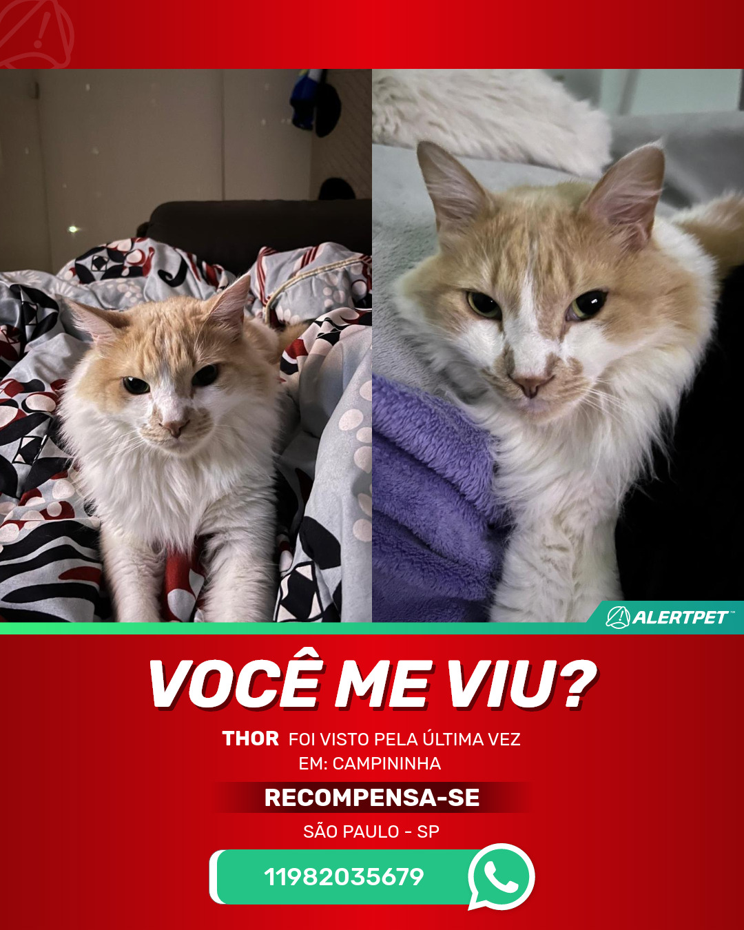 #AlertPet #Procurase #GatoDesaparecido #SaoPaulo #ProcuramosThor