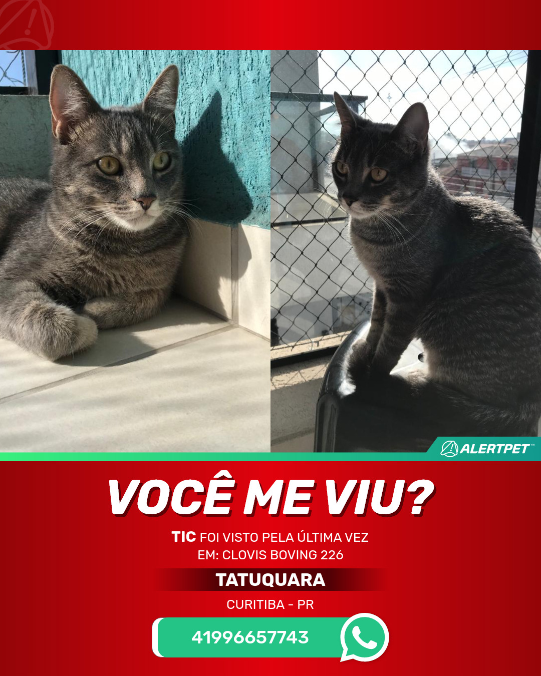 #AlertPet #Procurase #GatoDesaparecido #Curitiba #ProcuramosTic