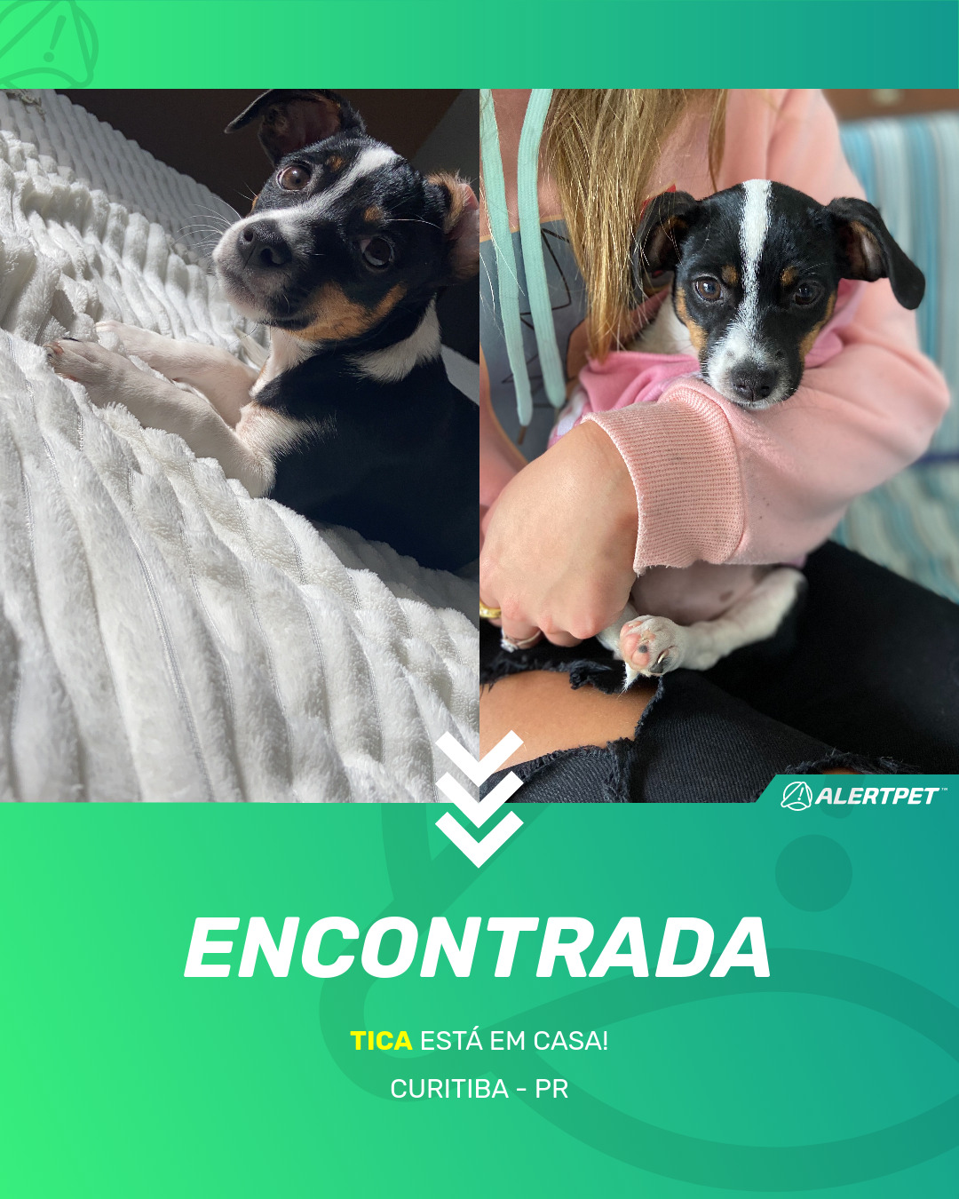 Depois de dois meses a cadelinha foi finalmente localizada graças a um anúncio da AlertPet