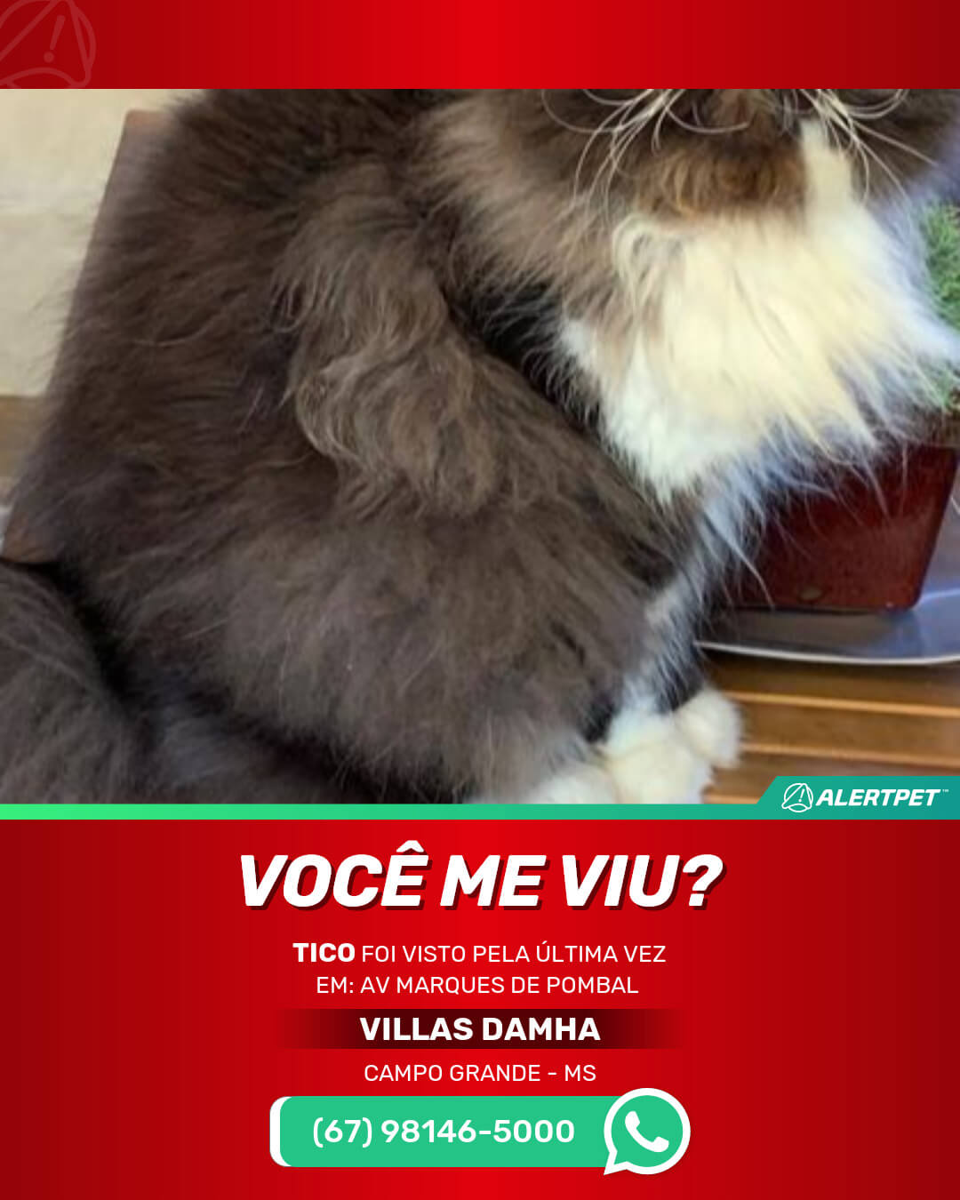 #alertpet #procurase #GatoDesaparecido #Campo Grande #procuramosTICO
