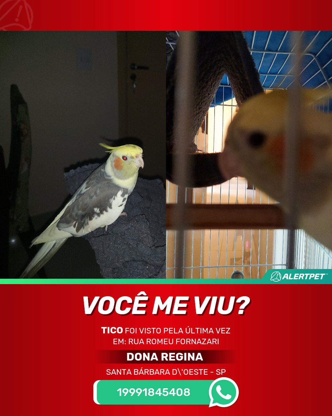 #alertpet #procurase #PássaroDesaparecido #Santa Bárbara D’Oeste #procuramosTico