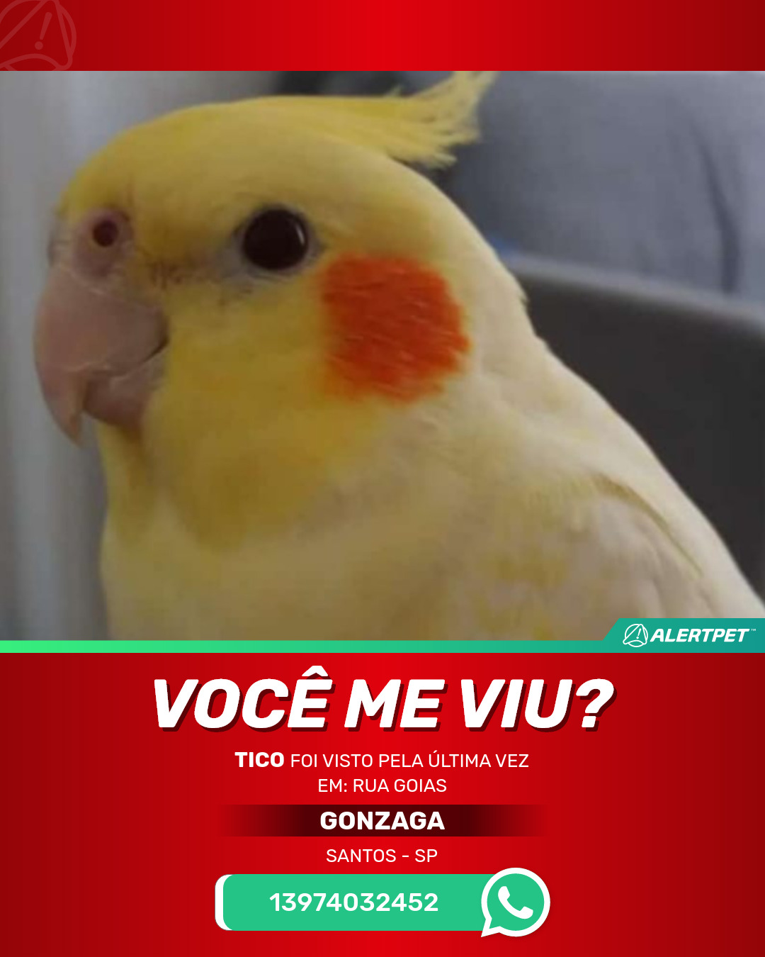 #AlertPet #Procurase #PassaroDesaparecido #Santos #ProcuramosTico