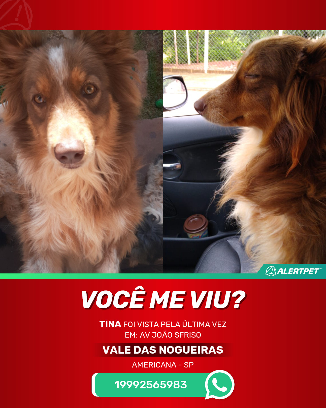 Então por favor se vc achar um animalzinho perdido, mesmo que bonitinho, de raça, brincalhão… saiba que existe uma família sofrendo por essa perda, então se esforce ao máximo para encontrar o dono. Se coloque no lugar da pessoa q perdeu. E se vc ver minha Tina em alguma casa, denuncie, prometemos manter sigilo.