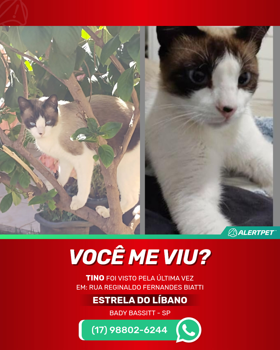 #alertpet #procurase #GatoDesaparecido #Bady Bassitt #procuramosTino