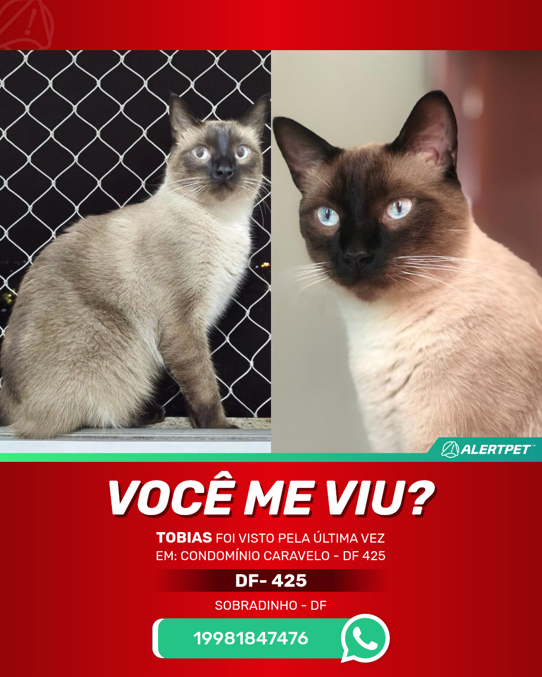 #AlertPet #Procurase #GatoDesaparecido #Sobradinho #ProcuramosTobias