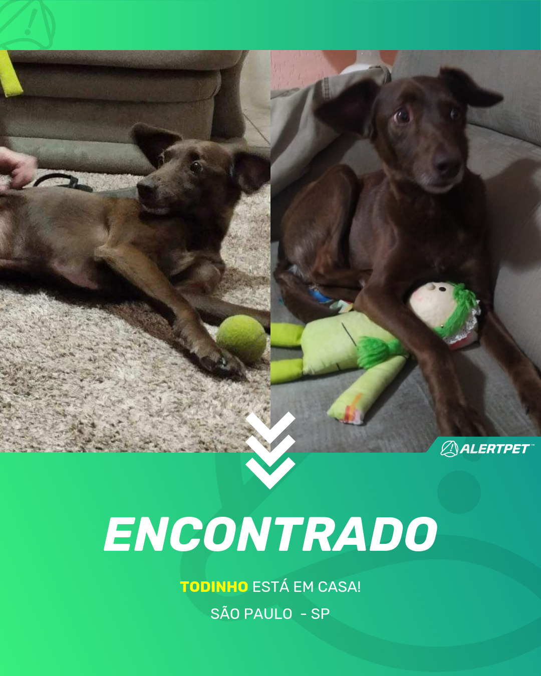 Depois de dois meses a cadelinha foi finalmente localizada graças a um anúncio da AlertPet