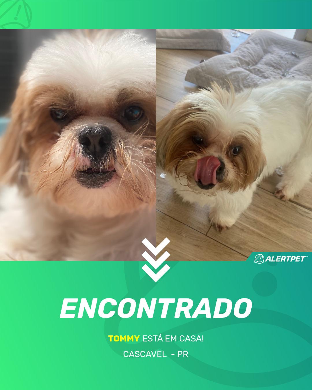 Depois de dois meses a cadelinha foi finalmente localizada graças a um anúncio da AlertPet
