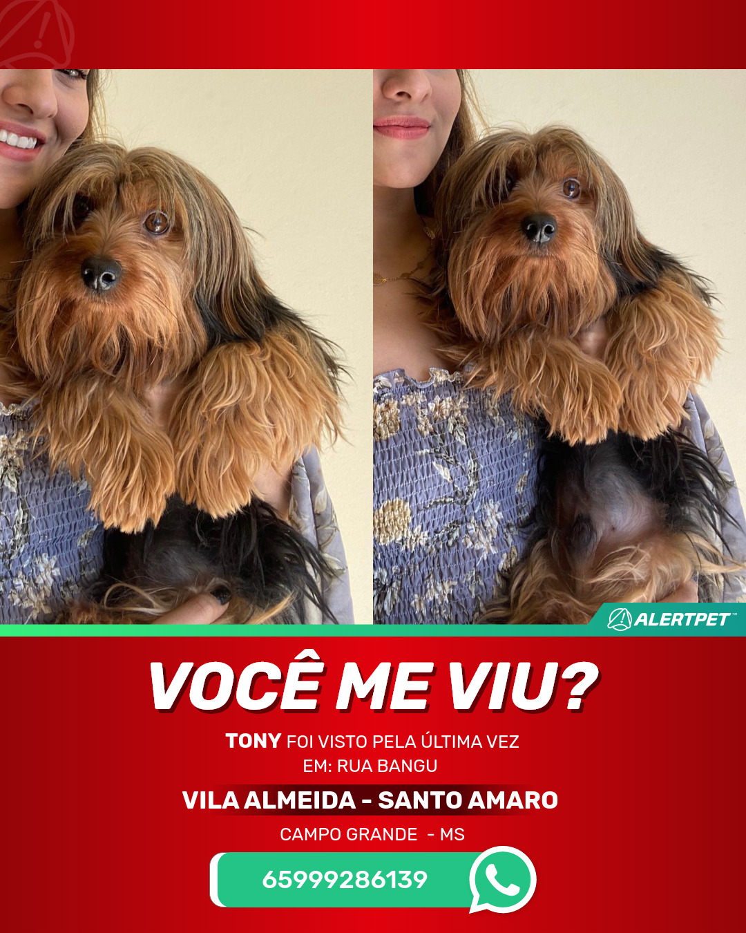 #AlertPet #Procurase #CachorroDesaparecido #CampoGrande #ProcuramosTony