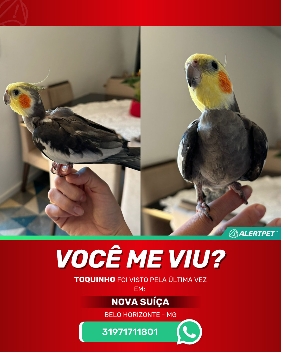 #AlertPet #Procurase #PassaroDesaparecido #BeloHorizonte #ProcuramosToquinho