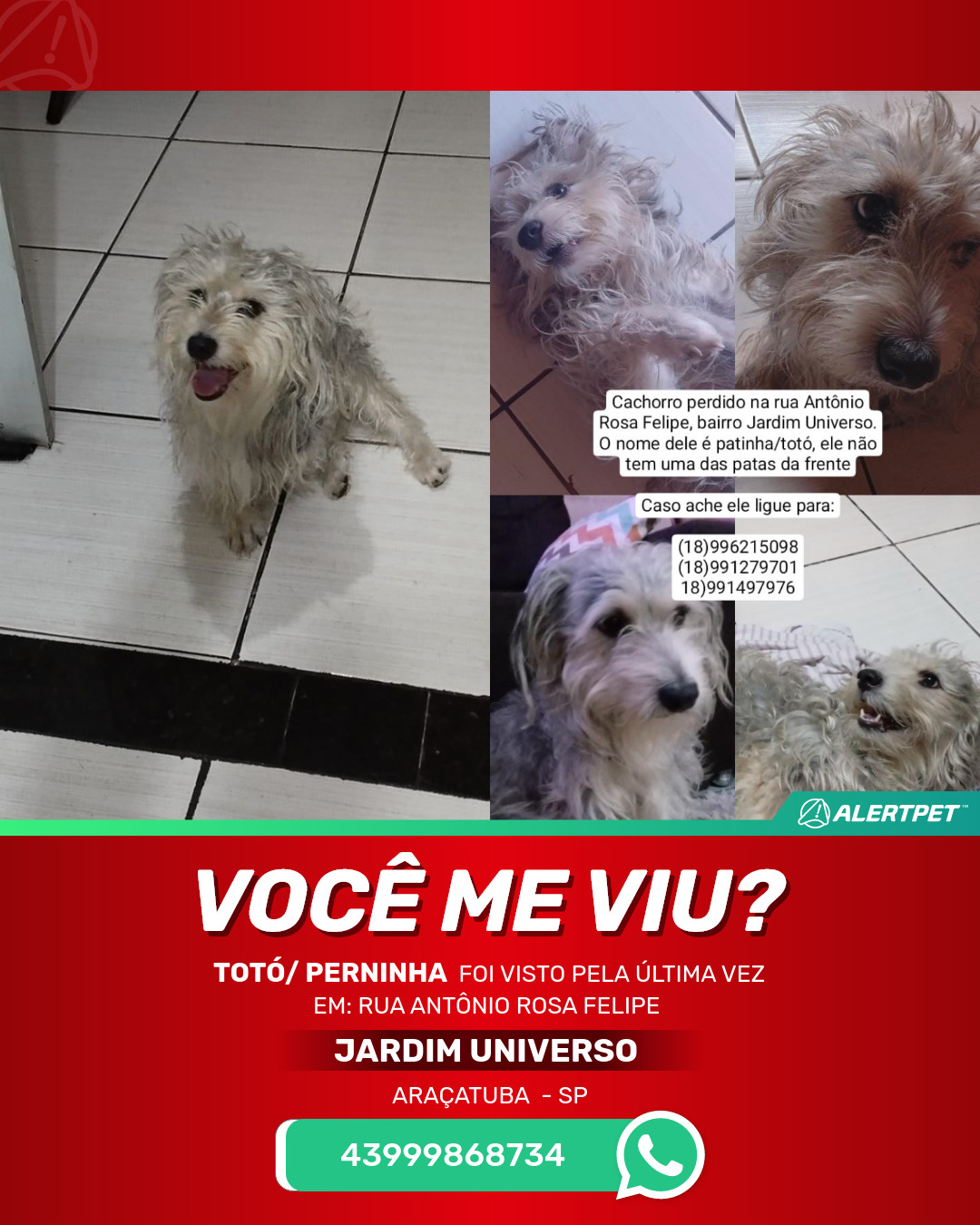 #AlertPet #Procurase #CachorroDesaparecido #Aracatuba #ProcuramosToto/Perninha
