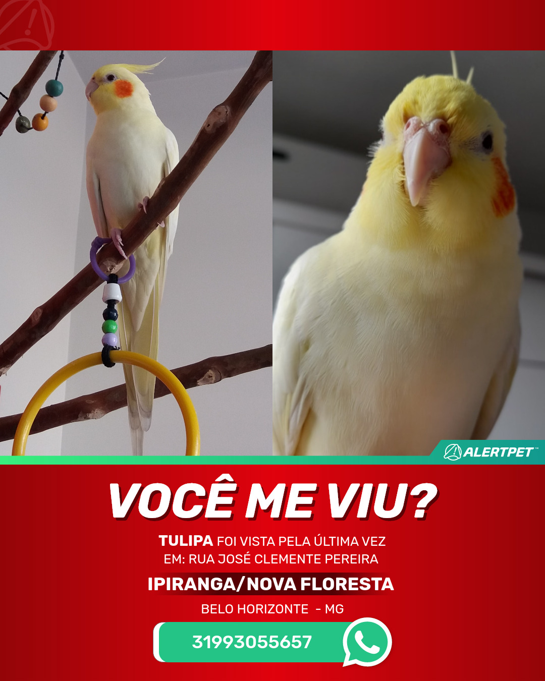 #AlertPet #Procurase #PassaroDesaparecido #BeloHorizonte #ProcuramosTulipa