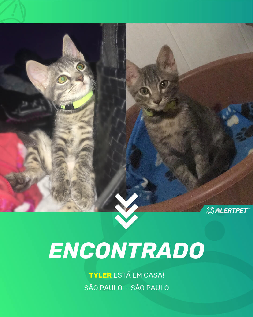 Tenho mais um gato bebê, os dois não se desgrudam por nada no mundo, desde quando ele sumiu, o outro não para de miar o dia todo procurando o irmão, além disso, Tyler tem um problema sério, precisa tomar remédios todos os dias e sumiu no meio do tratamento.
