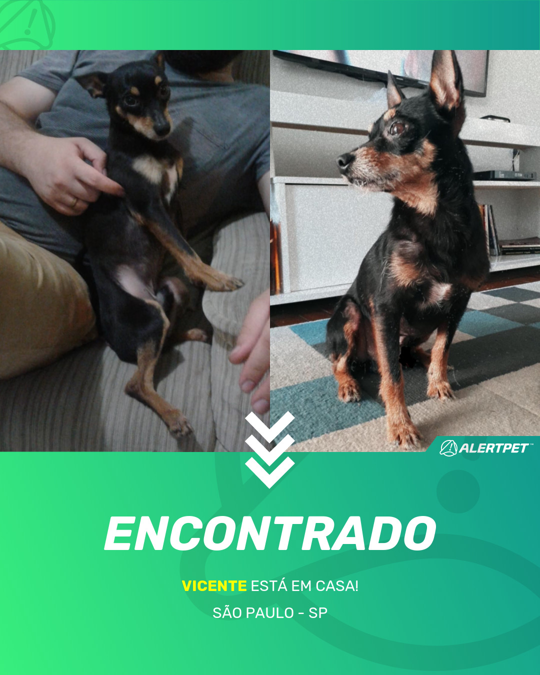 Depois de dois meses a cadelinha foi finalmente localizada graças a um anúncio da AlertPet