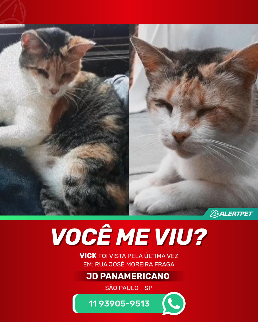 #AlertPet #Procurase #GatoDesaparecido #SaoPaulo #ProcuramosVick