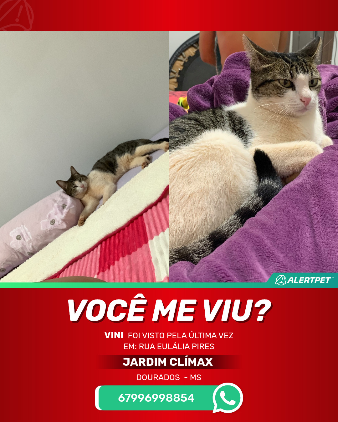 #AlertPet #Procurase #GatoDesaparecido #Dourados #ProcuramosVini