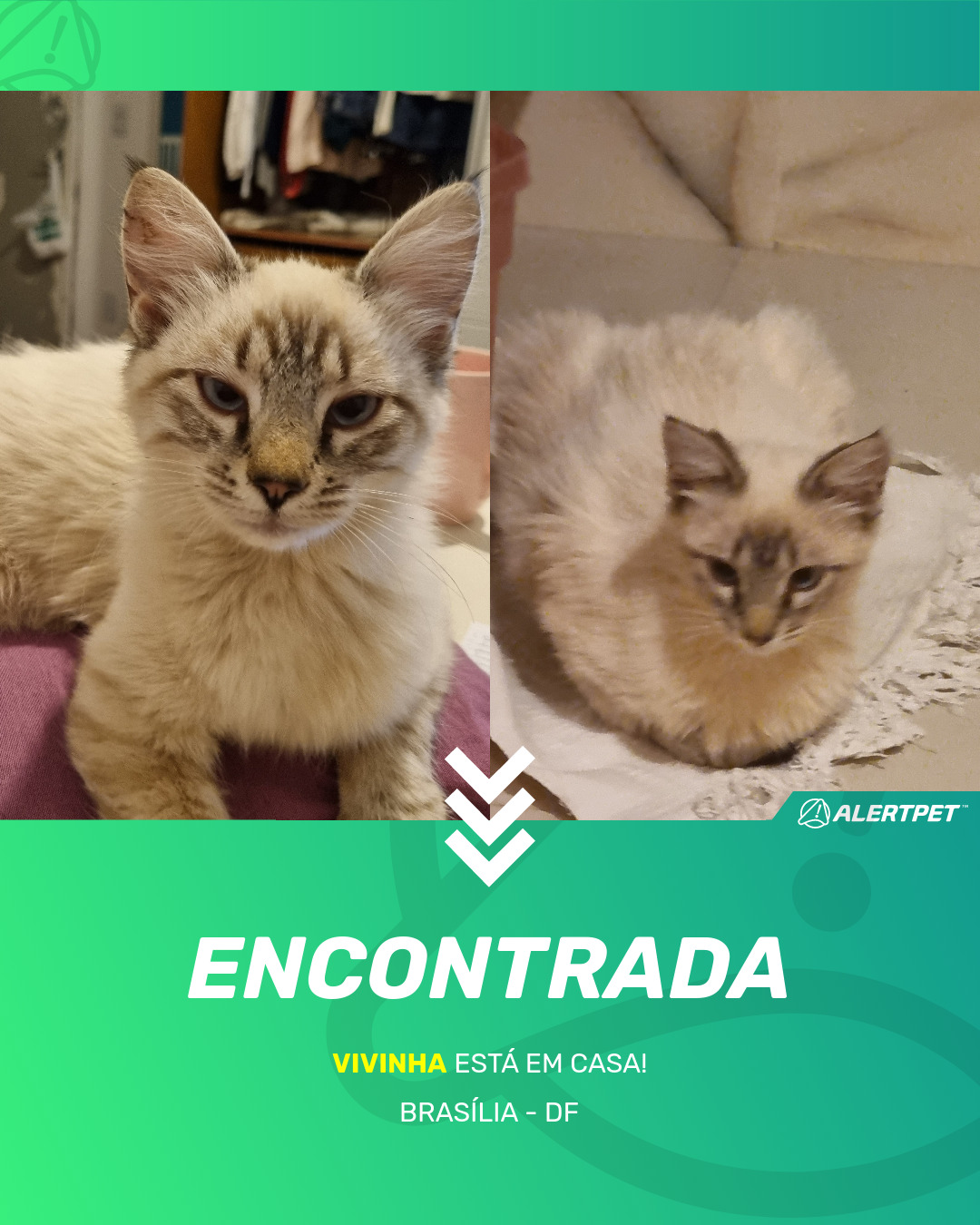 Depois de dois meses a cadelinha foi finalmente localizada graças a um anúncio da AlertPet