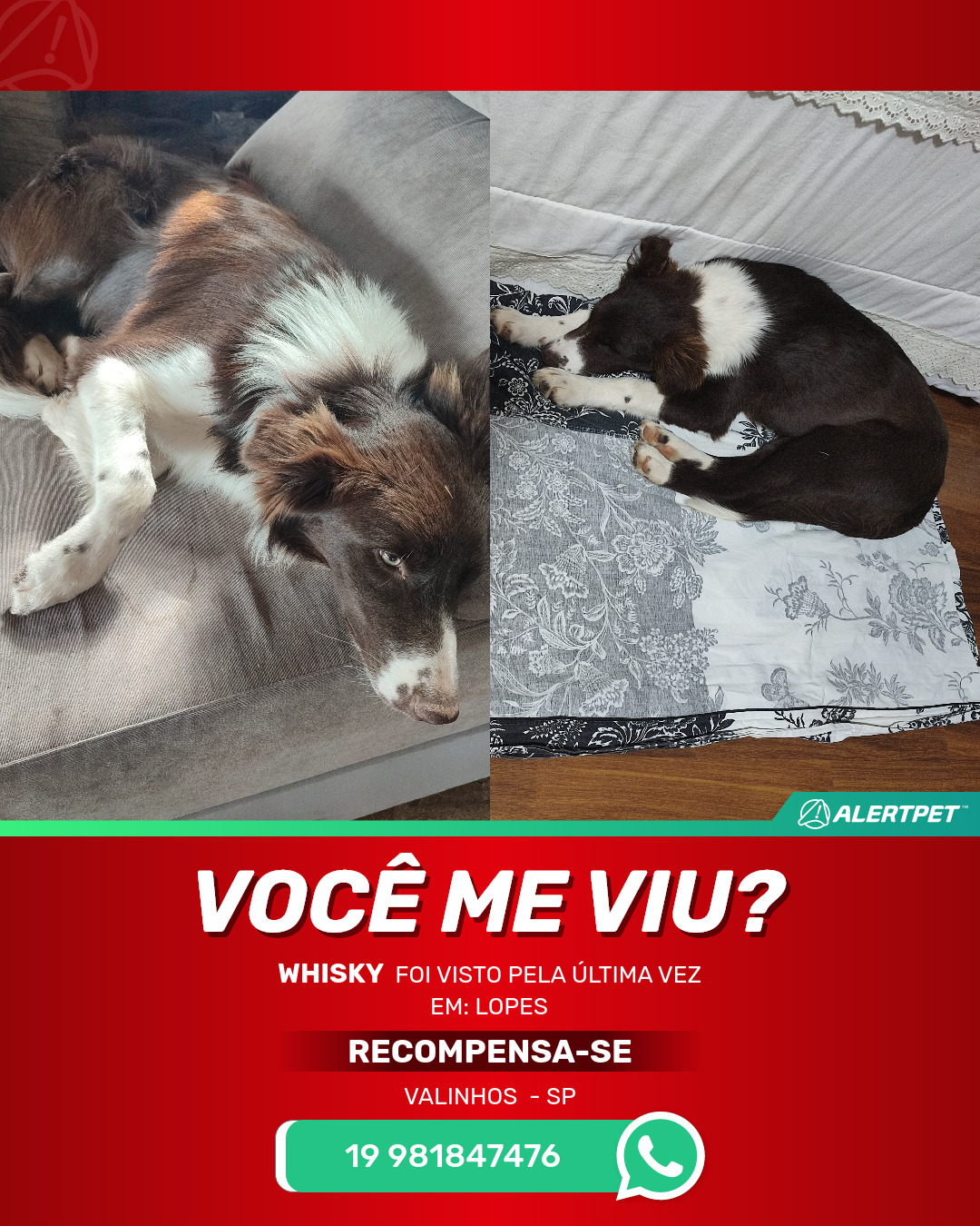 #AlertPet #Procurase #CachorroDesaparecido #Valinhos #ProcuramosWhisky