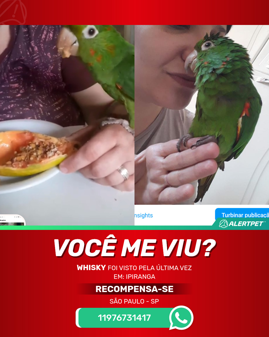 #AlertPet #Procurase #PassaroDesaparecido #SaoPaulo #ProcuramosWhisky