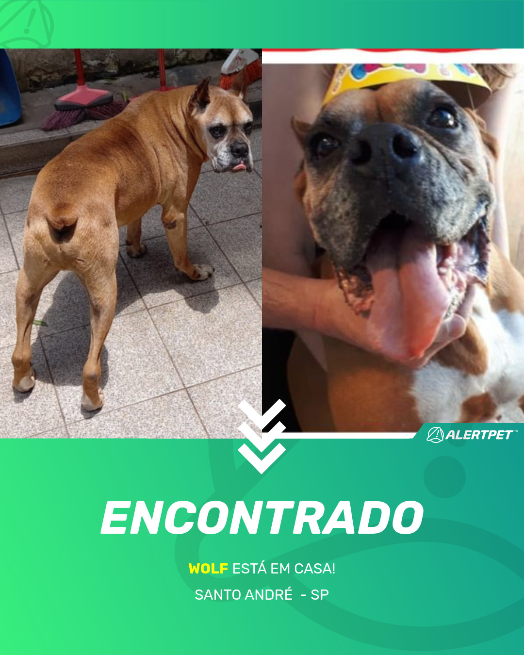 Depois de dois meses a cadelinha foi finalmente localizada graças a um anúncio da AlertPet