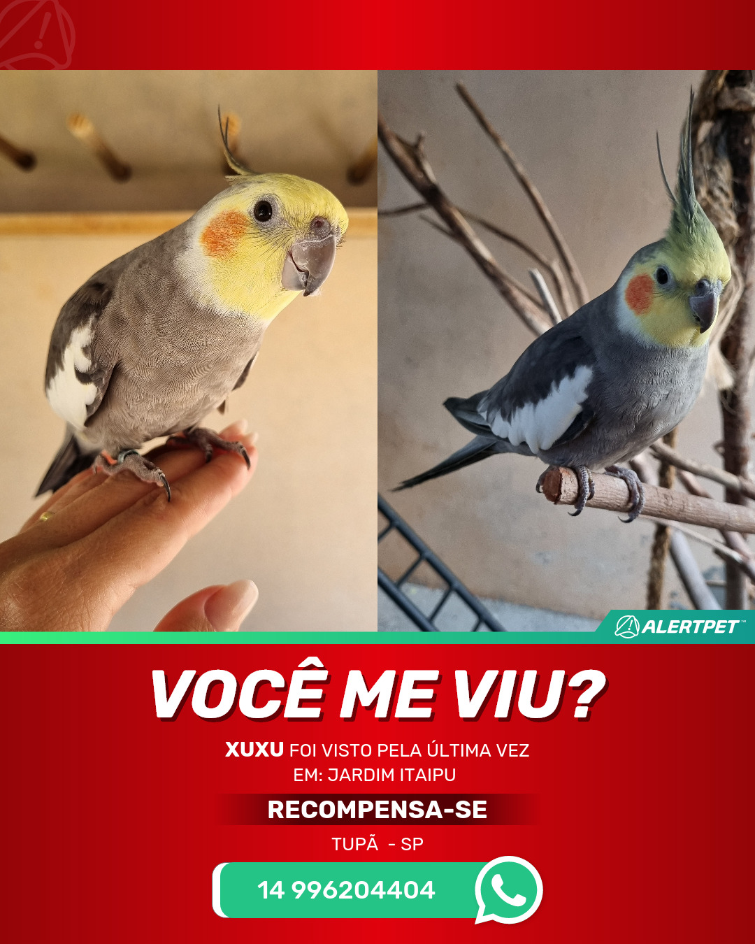 #AlertPet #Procurase #PassaroDesaparecido #Tupa #ProcuramosXuxu
