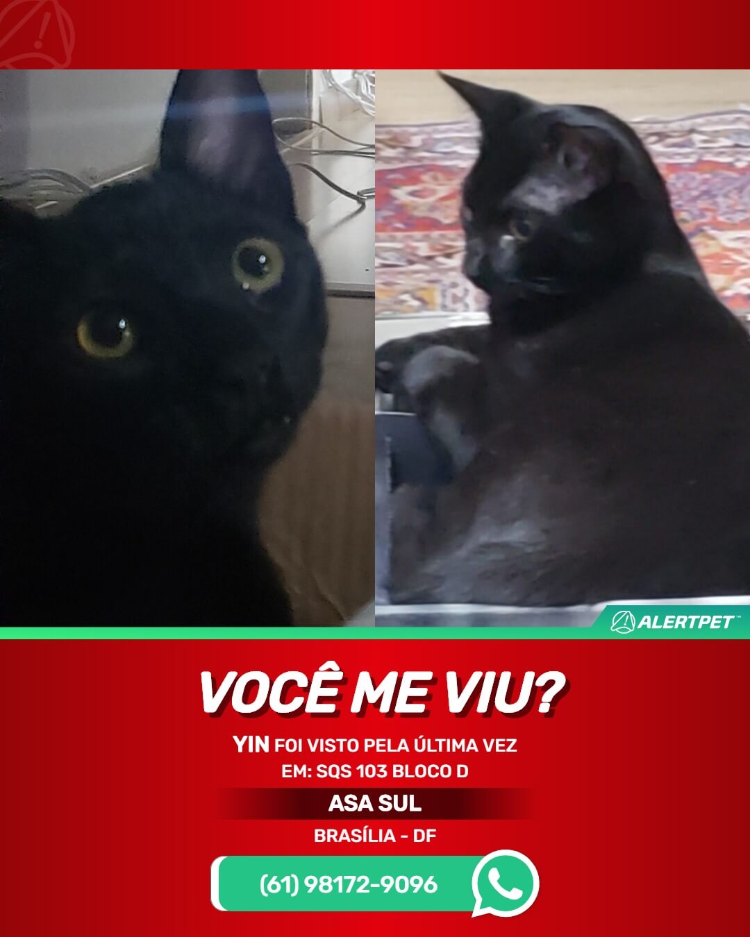 #alertpet #procurase #GatoDesaparecido #Brasília #procuramosYIN