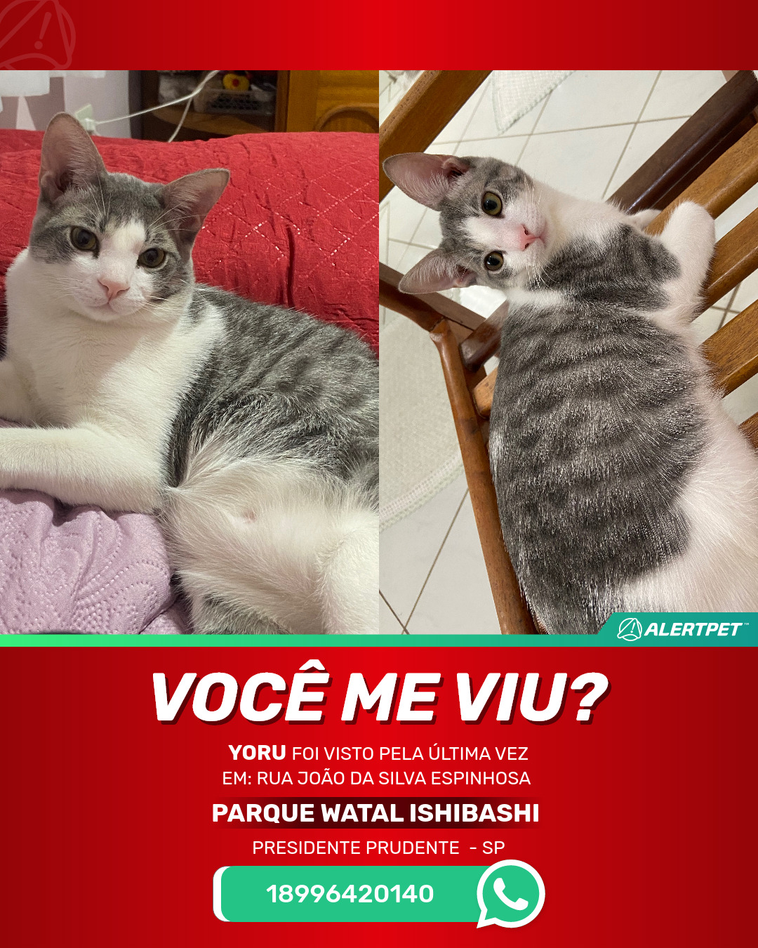 #AlertPet #Procurase #GatoDesaparecido #PresidentePrudente #ProcuramosYoru