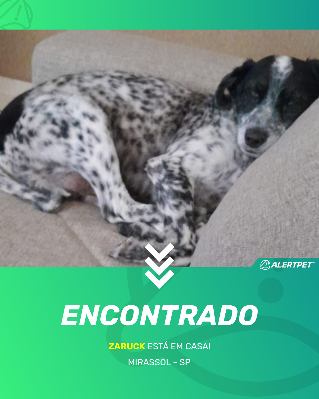 Depois de dois meses a cadelinha foi finalmente localizada graças a um anúncio da AlertPet