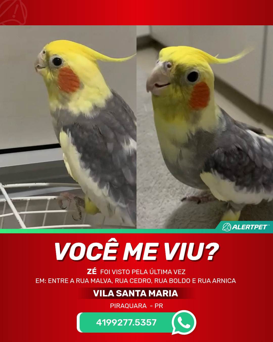 #AlertPet #Procurase #PassaroDesaparecido #Piraquara #ProcuramosZe