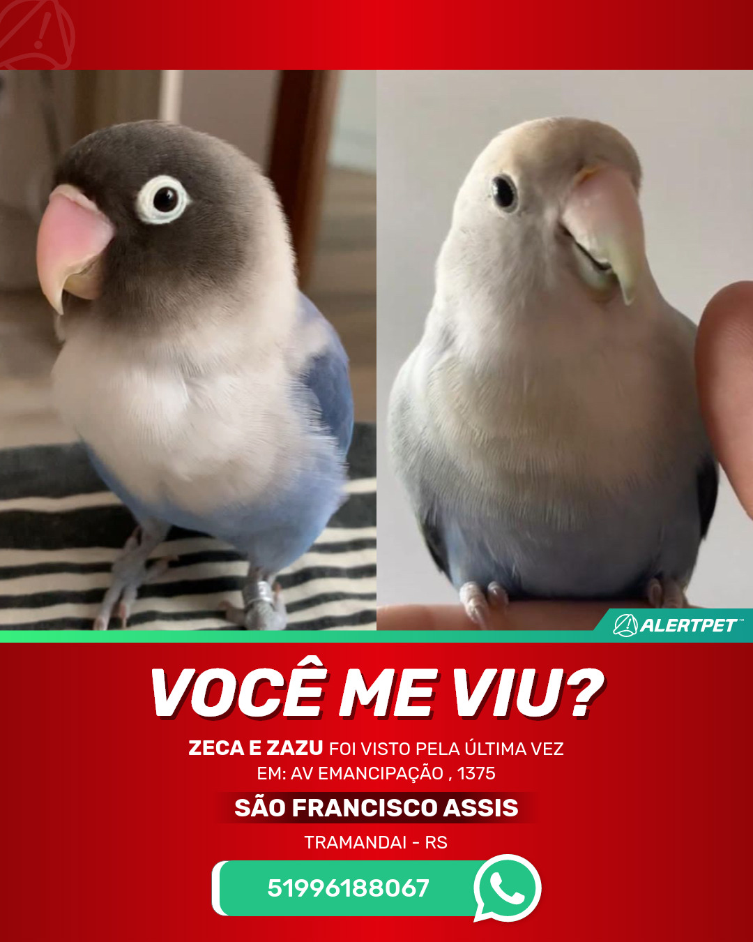 #AlertPet #Procurase #PassaroDesaparecido #Tramandai #ProcuramosZecaEZazu