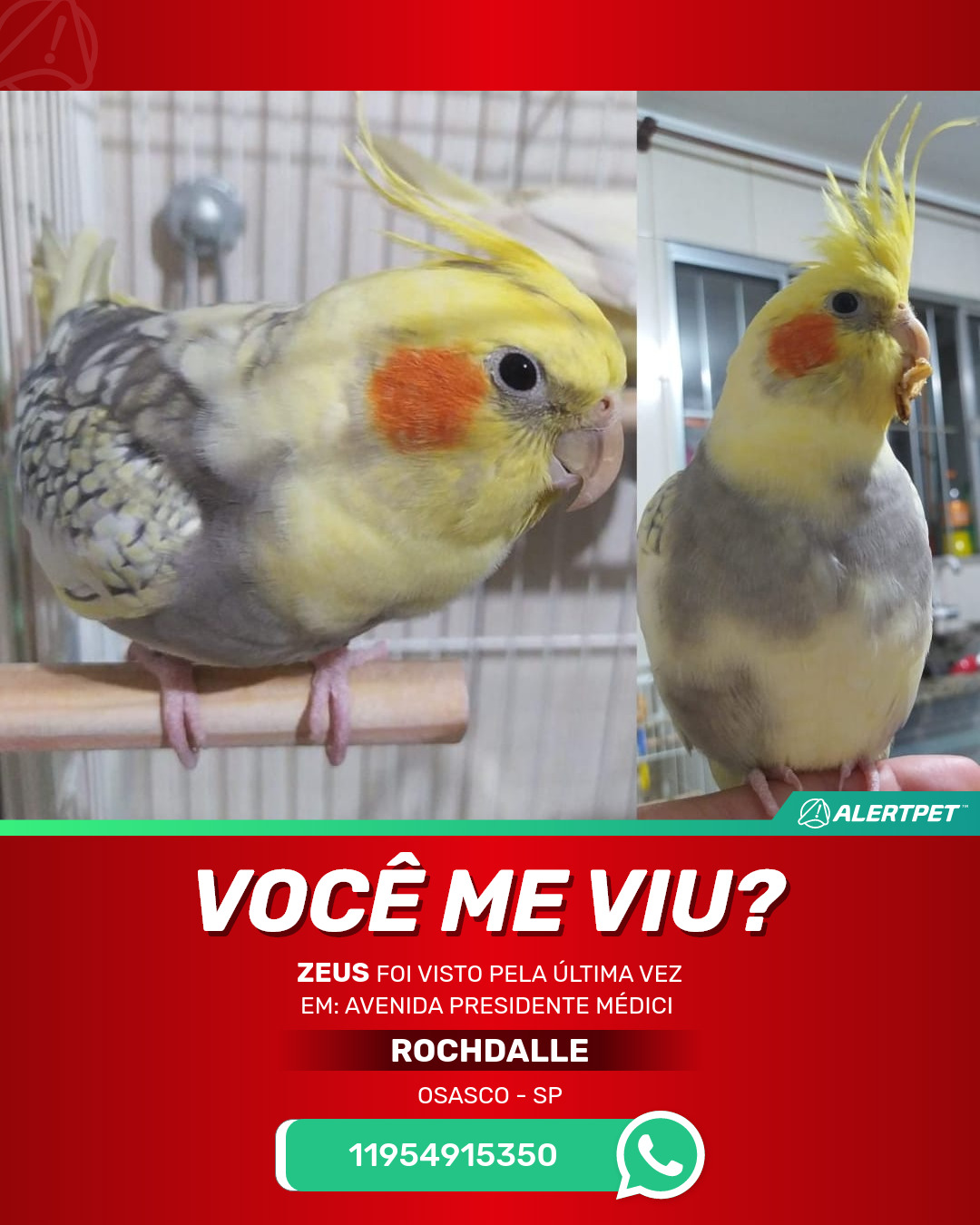 #AlertPet #Procurase #PassaroDesaparecido #Osasco #ProcuramosZeus
