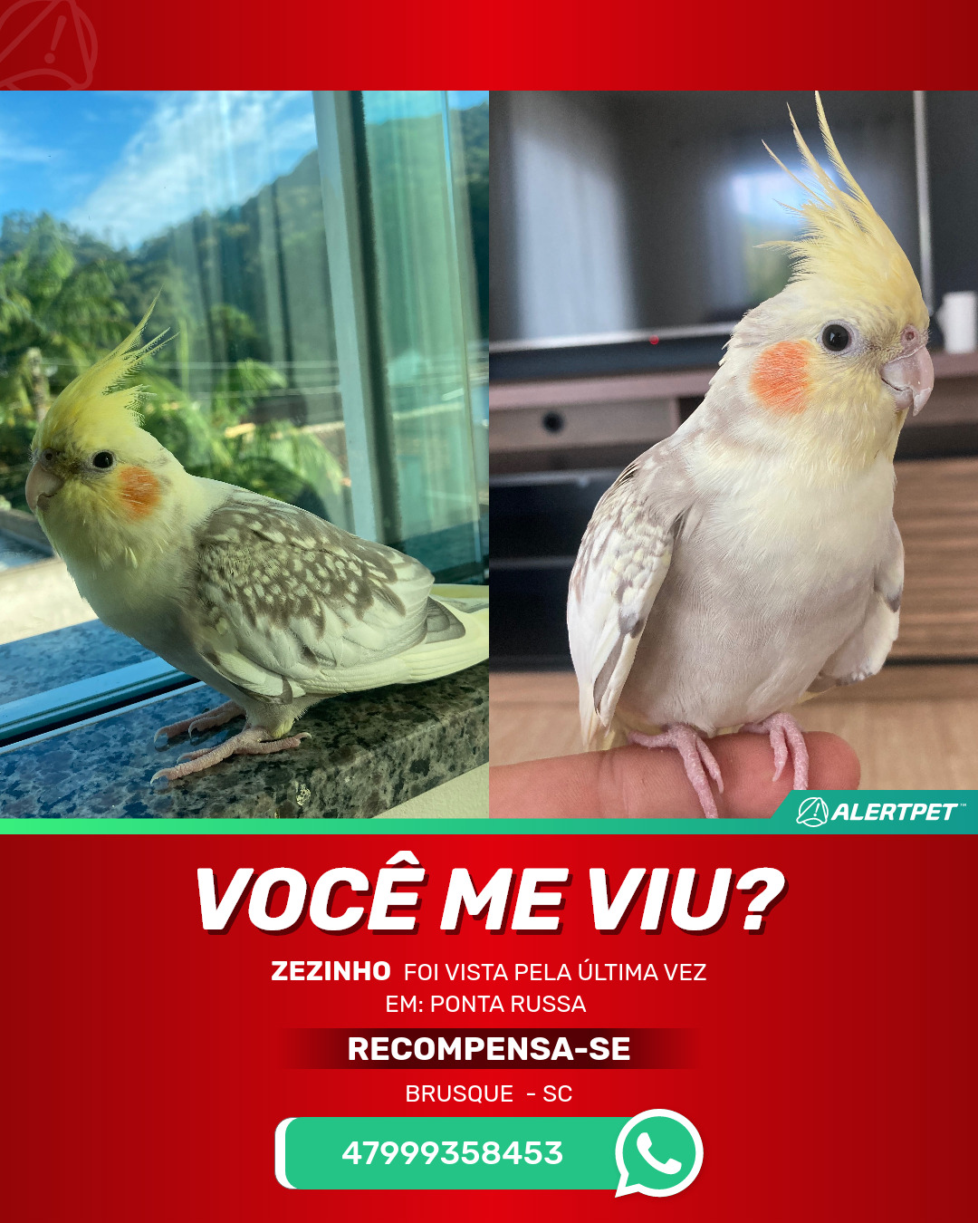 #AlertPet #Procurase #PassaroDesaparecido #Brusque #ProcuramosZezinho
