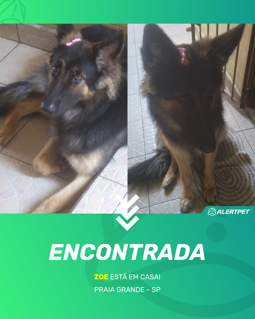 Depois de dois meses a cadelinha foi finalmente localizada graças a um anúncio da AlertPet