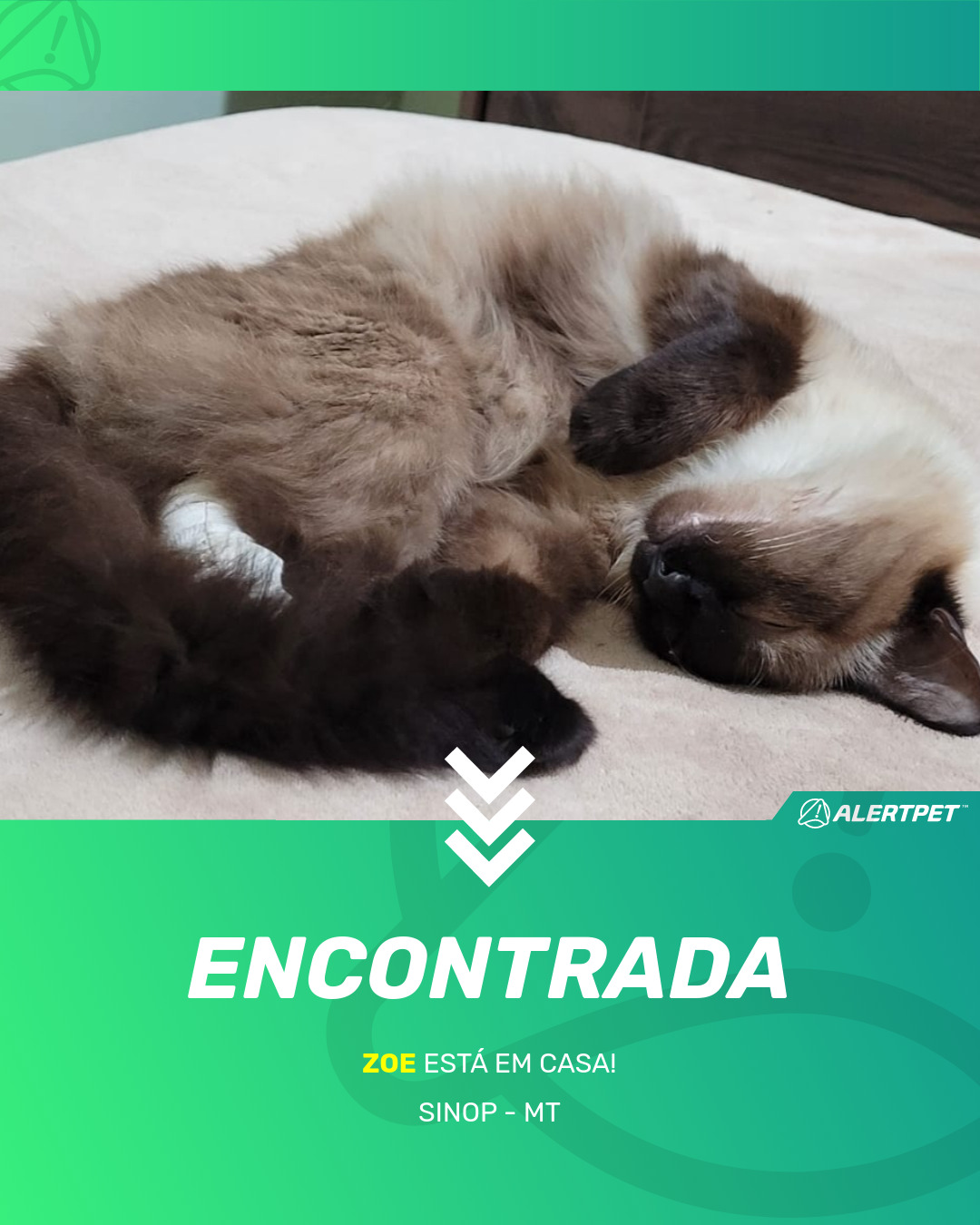 Depois de dois meses a cadelinha foi finalmente localizada graças a um anúncio da AlertPet