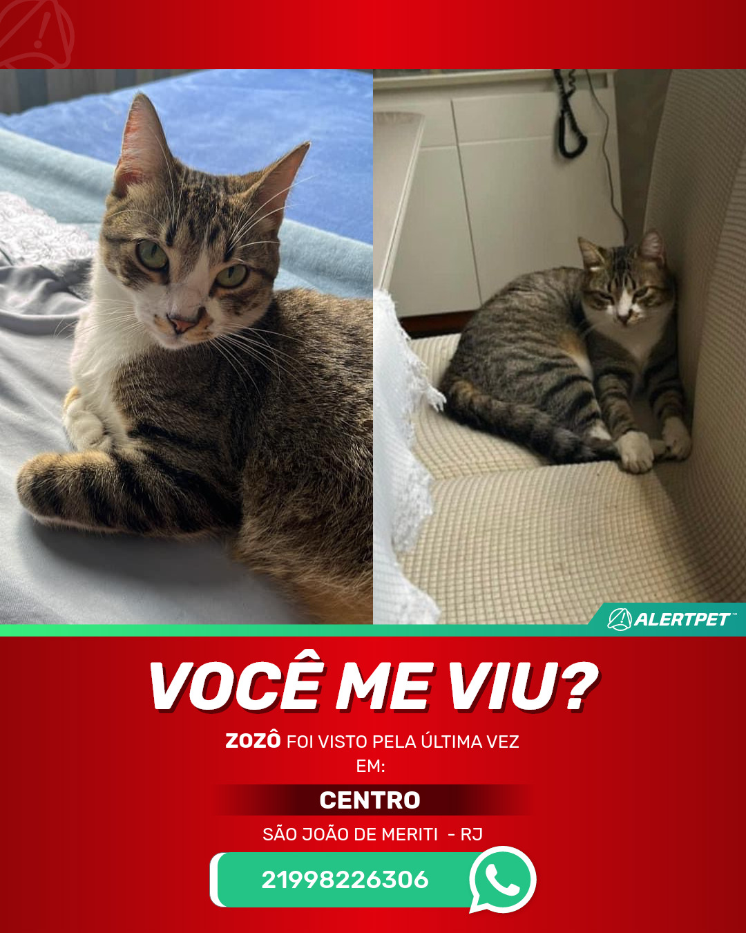 #AlertPet #Procurase #GatoDesaparecido #SaoJoaoDeMeriti #ProcuramosZozo
