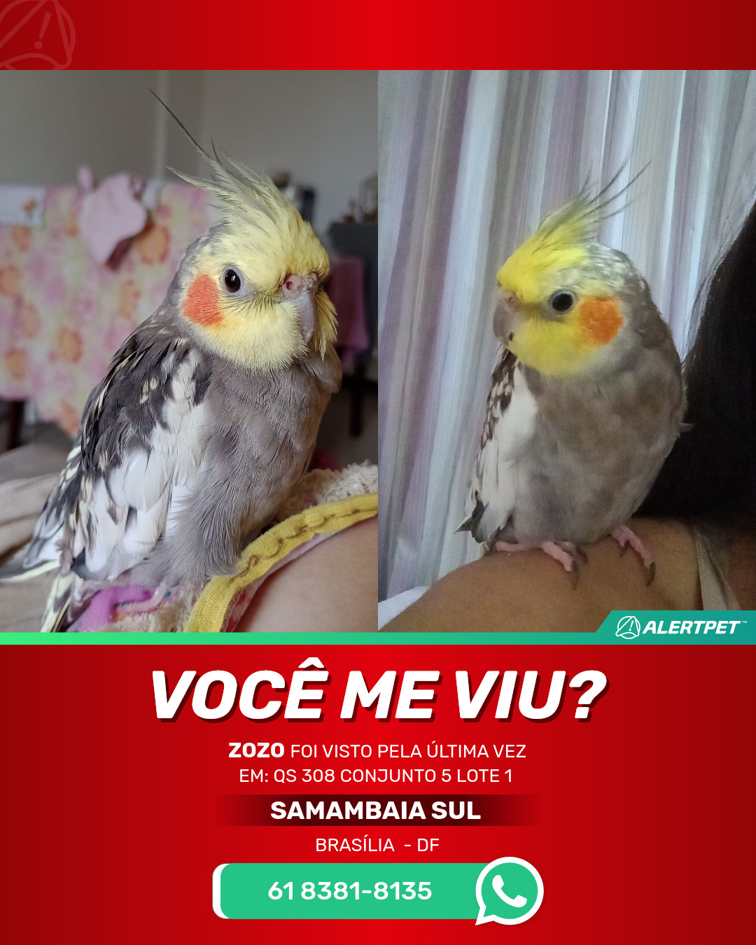 #AlertPet #Procurase #PassaroDesaparecido #Brasilia #ProcuramosZozo