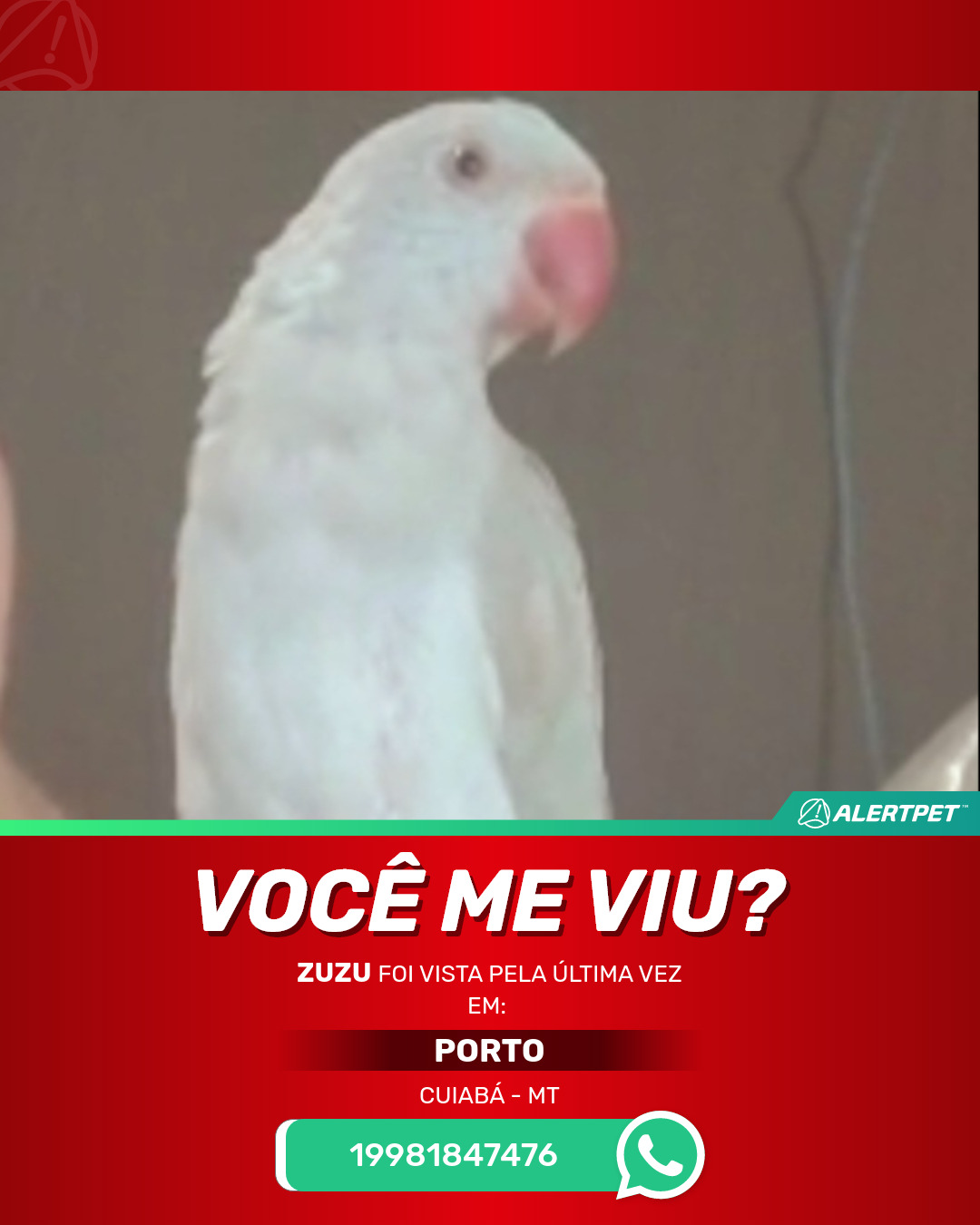 #AlertPet #Procurase #PassaroDesaparecido #Cuiaba #ProcuramosZuzu