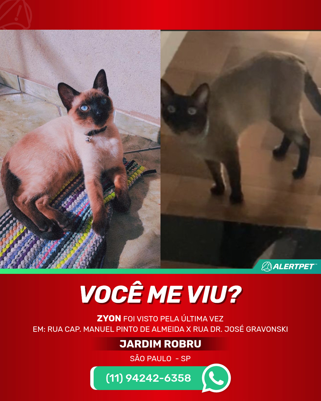 #alertpet #procurase #GatoDesaparecido #São Paulo #procuramosZyon