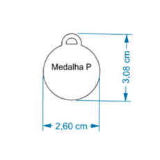 Medalha PFormato: Circular Largura: 2,6cm Altura: 3,08cm |
